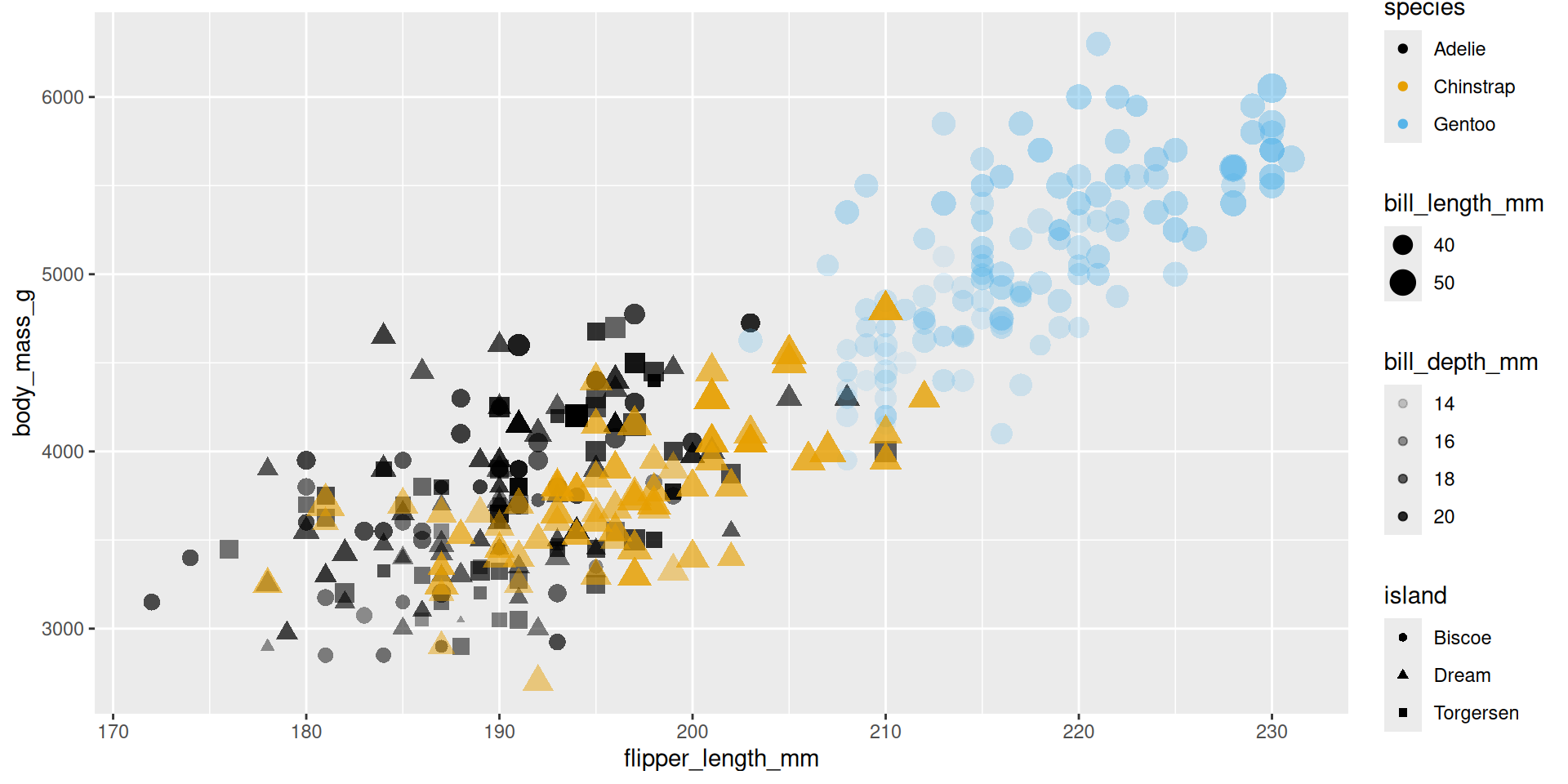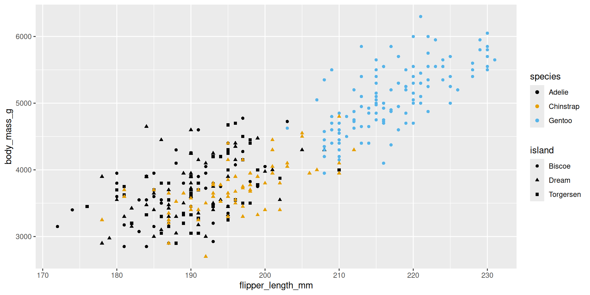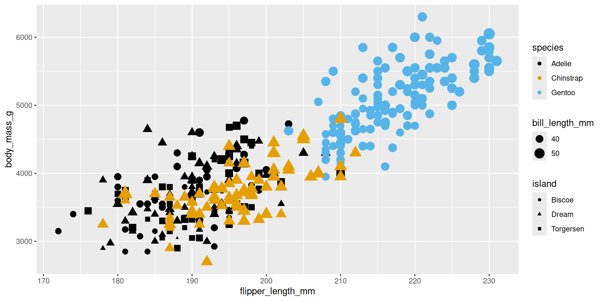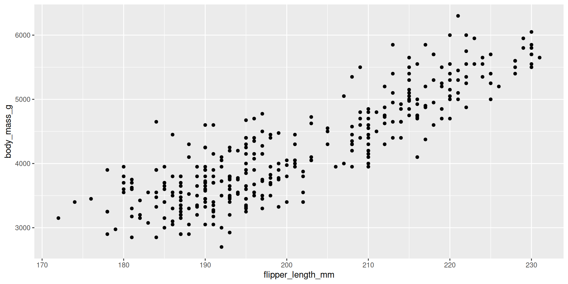 mapping = aes(x = flipper_length_mm, y = body_mass_g)