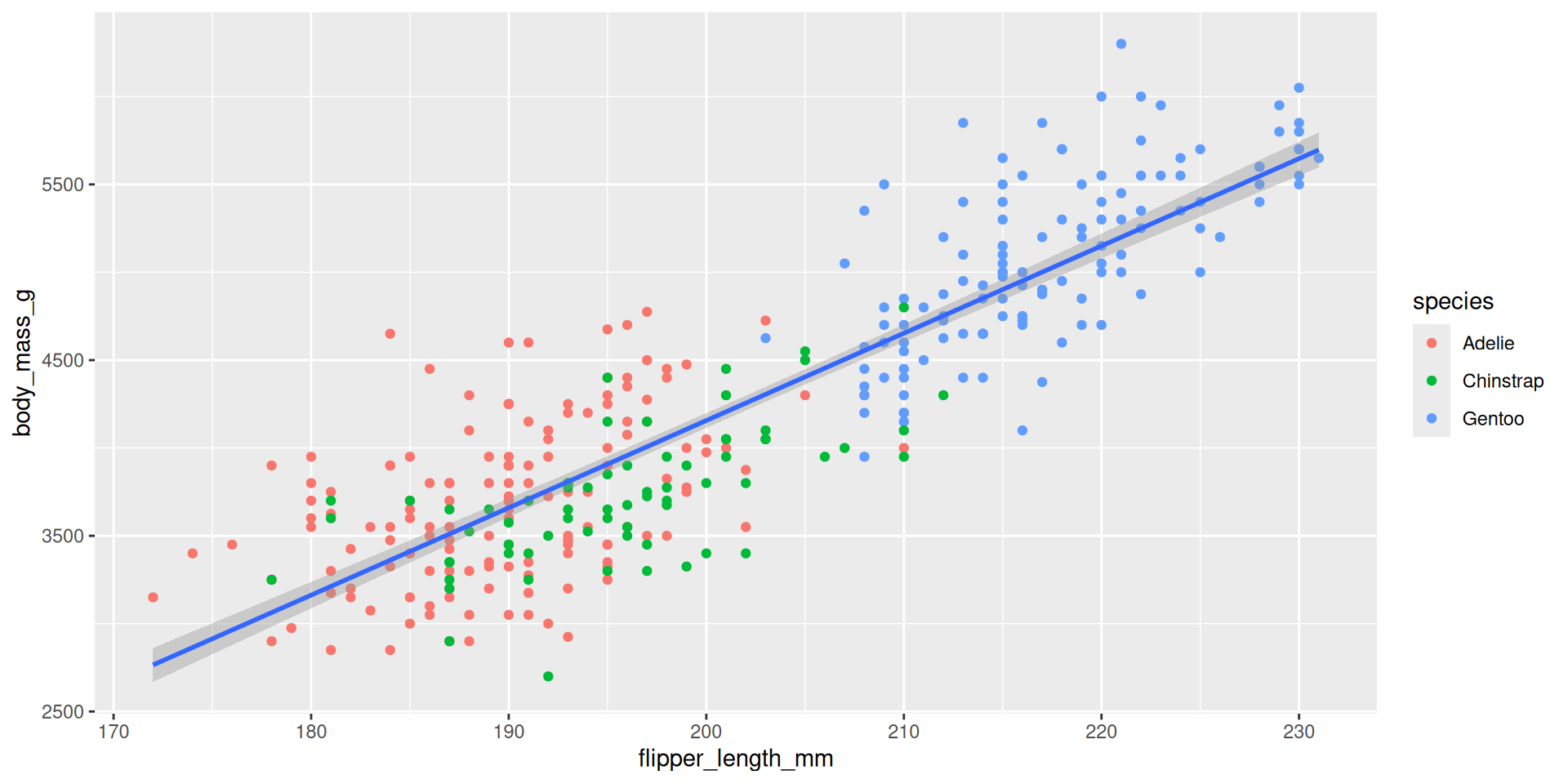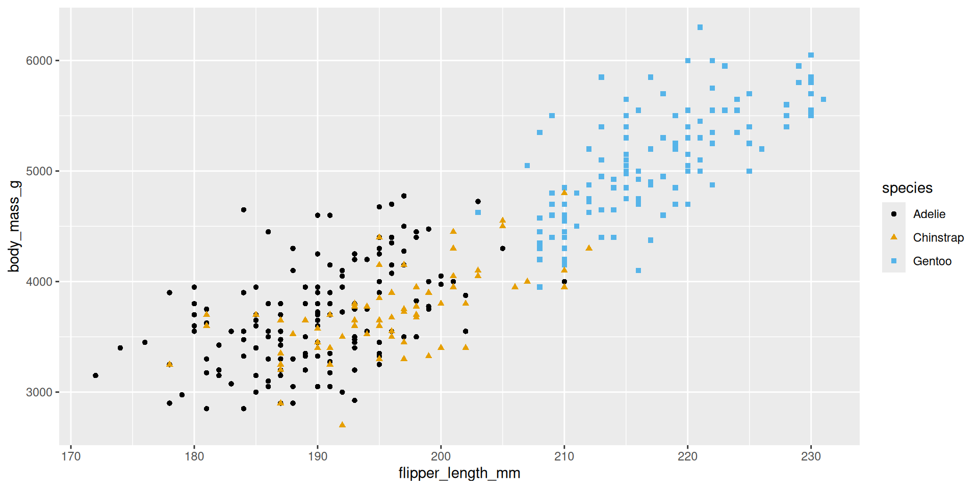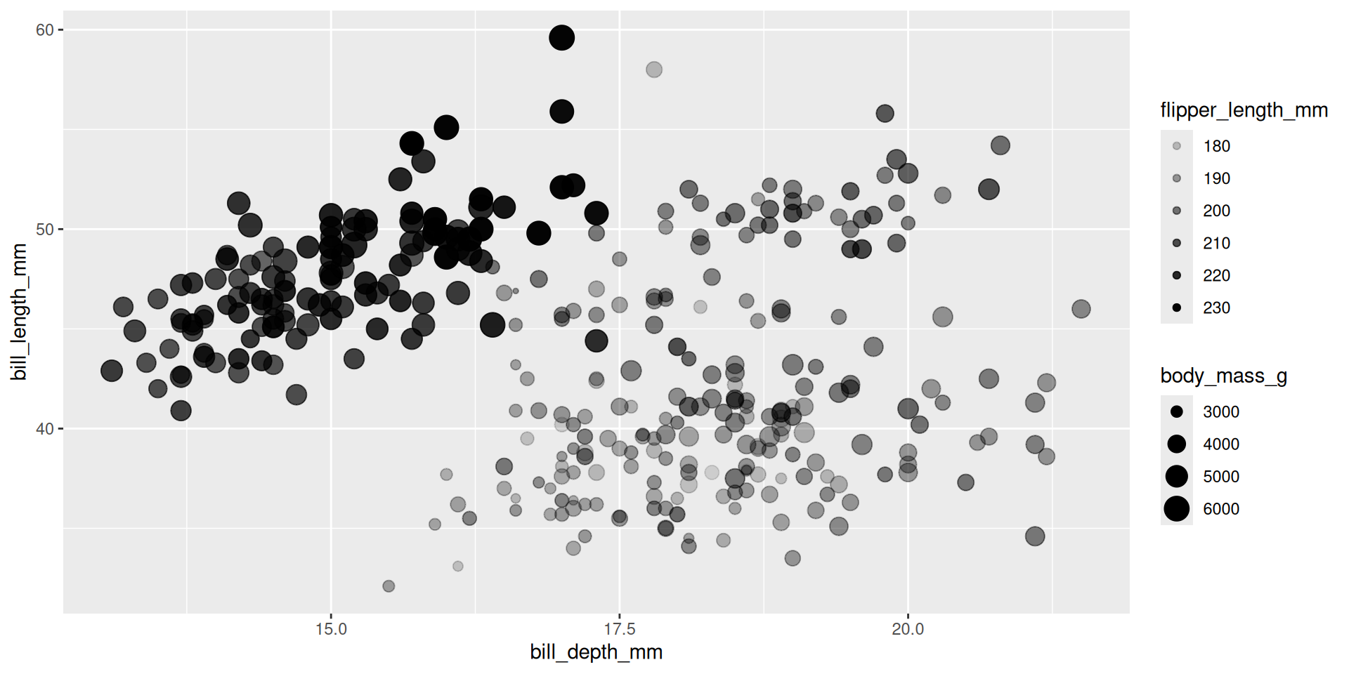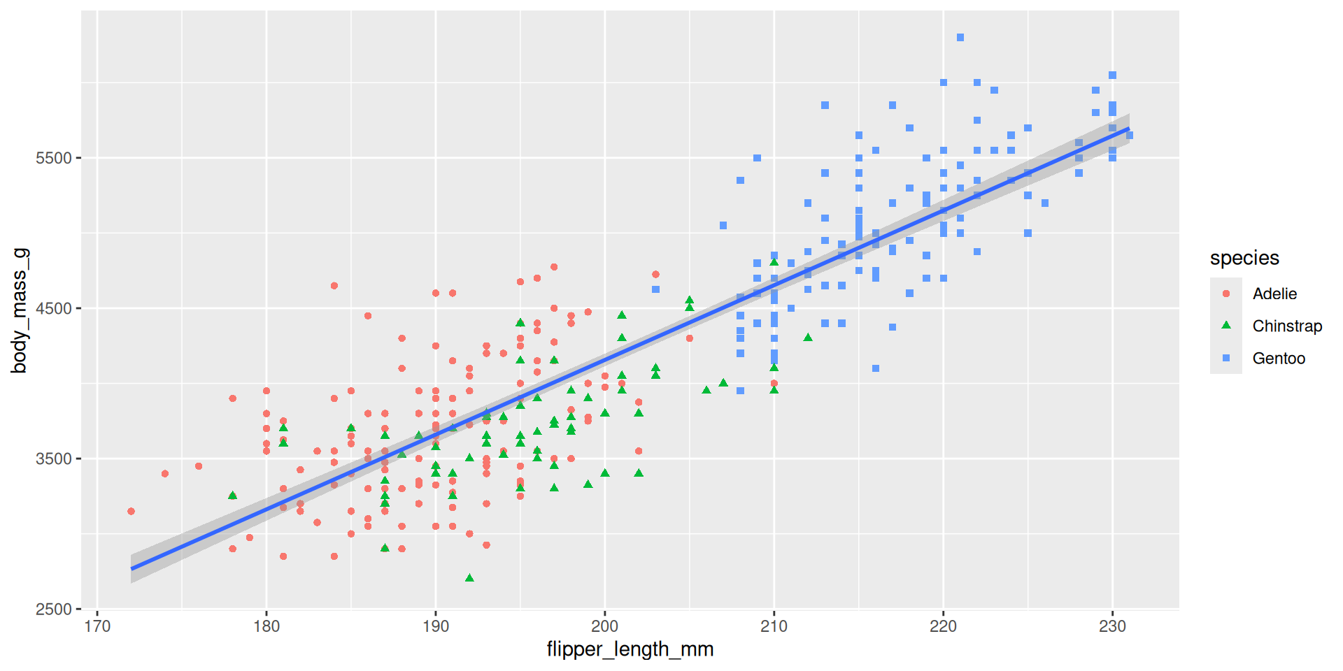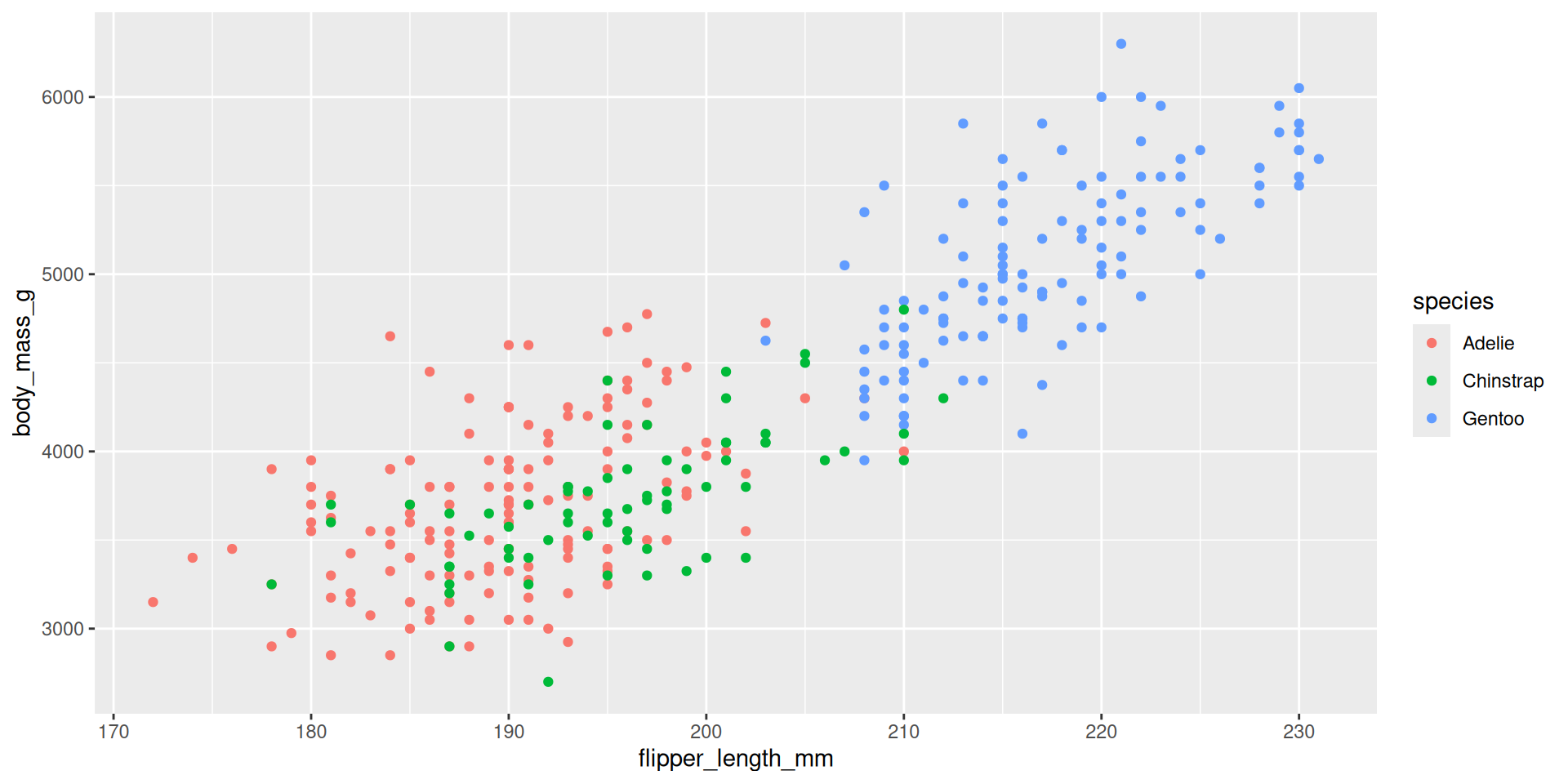 mapping = aes(x = flipper_length_mm, y = body_mass_g)
