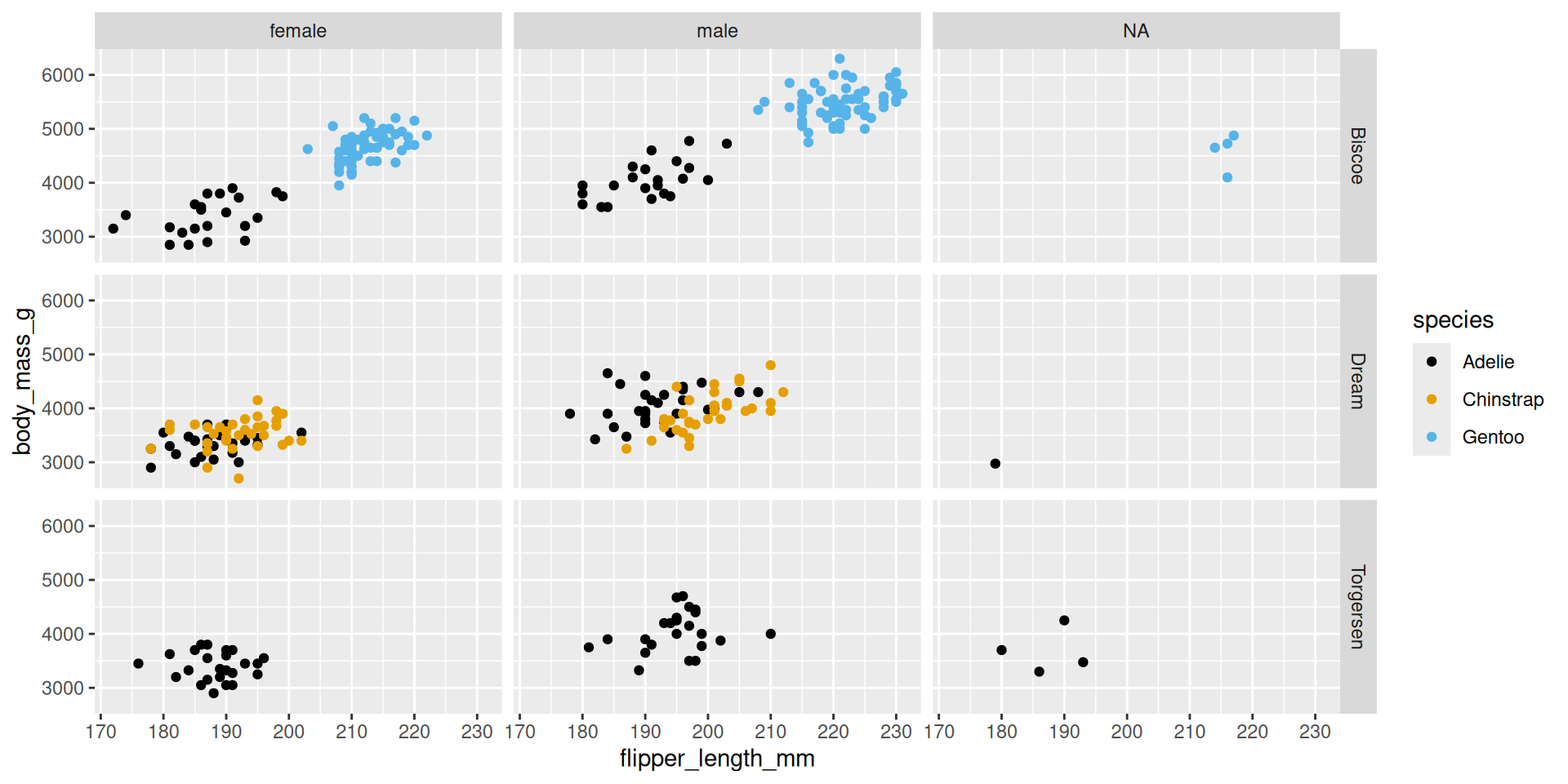 $ island <fct> Torgersen, Torgersen, Torgersen, Torgersen, Torgerse…